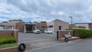 • 1階建ての施設である。広い駐車スペースやスライド式の門が完備されている。門壁には、植え込みがあるほか施設名称の設置物が置かれている。