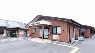 広い敷地に駐車スペースと平屋の建物が建てられています。敷地内は段差もなく、車椅子をご利用の方も安全にご移動していただけます。