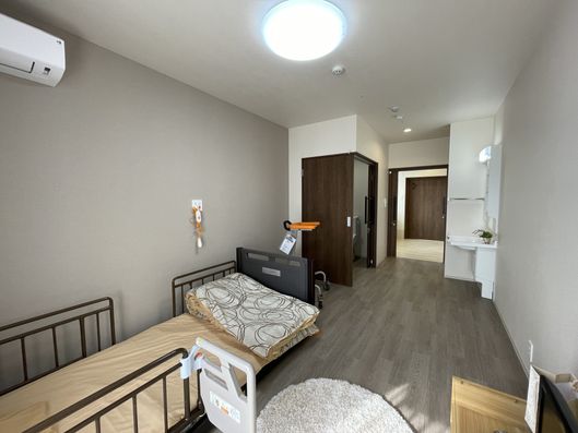 ゆったりとした雰囲気の居室で、心地よい生活をお過ごしいただけます。窓からは自然光が差し込み、暖かな空間を演出しています。