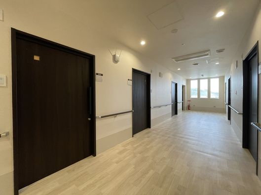 大阪府高石市にある「ナーシングホーム レイ クラディア」は、建物が完全バリアフリー対応になっていて、廊下は段差がなく歩きやすい造りです。ストレッチャーが楽に移動ほど幅があるのですれ違いざまにぶつかる心配もありません。