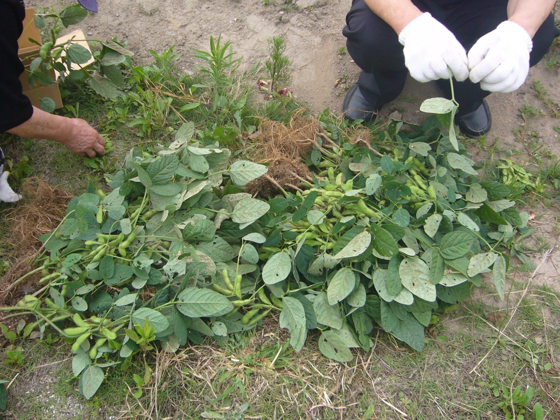プランターや敷地内で育てた野菜をみんなで収穫し、夕食時に食べています
