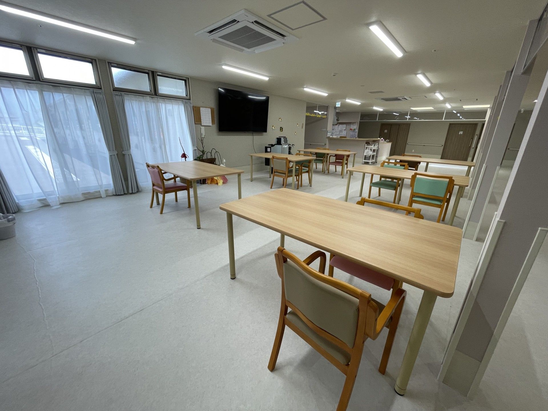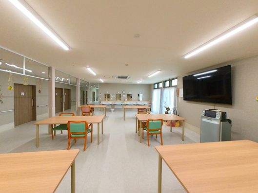 健心では、ご入居者様の生活に彩りを添える様々な行事やイベントを定期的に開催しております。餅つき大会、夏祭り、クリスマス会、お誕生日会など季節に応じた催しを企画し、ご入居者様の楽しみとなる機会を創出しています。2025年4月の2号棟オープン記念イベントでは、渋川雷太鼓や群馬フラダンス・タヒチアンダンスの皆様をお招きし、迫力ある演奏・演技を楽しんでいただきました。また、節分イベントでは赤鬼と青鬼が登場し、「おにのパンツのダンス」を披露するなど、ご入居者様に喜んでいただける工夫を凝らしています。デイサービスも併設しており、さまざまな交流の場をご提供しております。