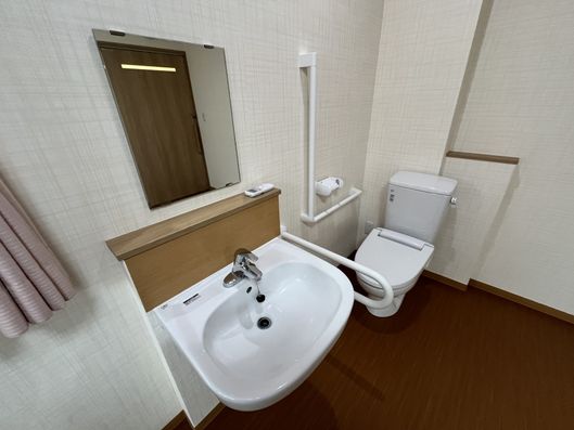 手すり付きで安全に配慮された居室です。ゆったりとした空間で、快適な日々をお過ごしいただけます。