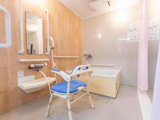 介護ケアが必要な方もゆったりとご入浴いただける浴室です。清潔な空間でリラックスタイムを。