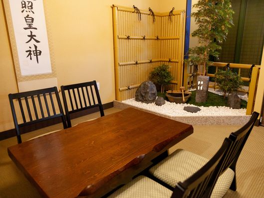 広々とした食堂で快適な食事のひと時をお過ごしいただけます。窓辺の席からは外の景色もご覧になれます。
