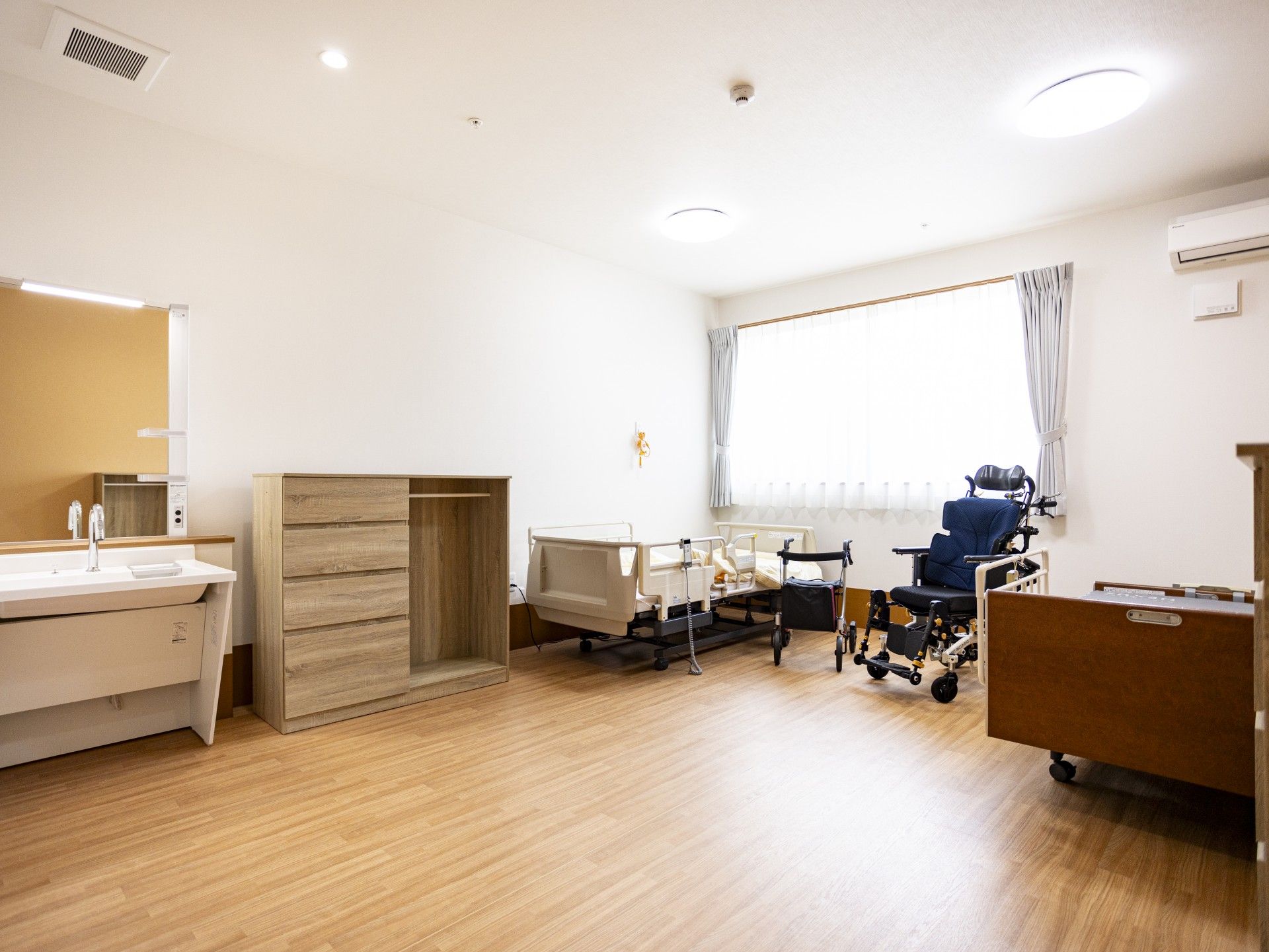 広々とした個室には、車椅子やベッドが配置され、使いやすさが考慮されています。