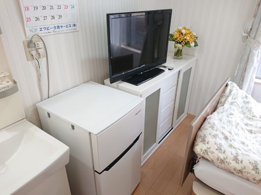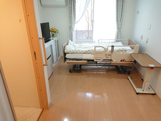 当施設では、医療依存度や介護度の異なるご入居様一人ひとりに合わせた受け入れ体制を整えています。居室はすべて個室で、プライバシーを尊重しつつ、安全かつ快適にお過ごしいただけるようにデザインされています。各個室には、トイレ、洗面台、32型テレビ、冷蔵庫、クロゼットを完備し、ご入居様が自分らしい生活を送れるようサポートしています。居室にご家族様が宿泊することも出来ます。私たちは、ご入居様が日々の生活に安心と喜びを感じていただけるよう、細部にわたる配慮を行っております。