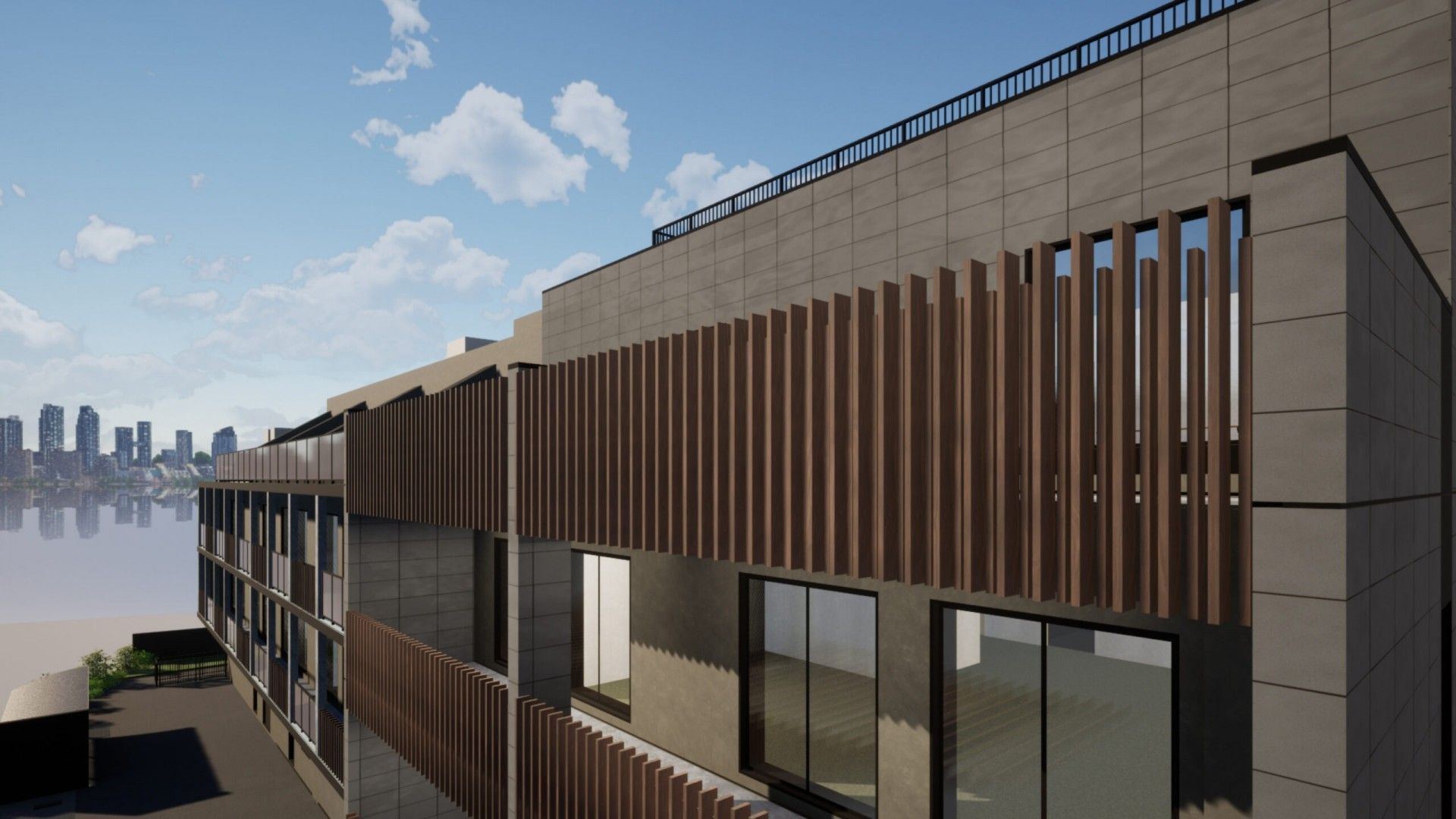 • 外観 シンプルで洗練されたデザインの建物です。周囲の緑が心地よい雰囲気を演出しています。