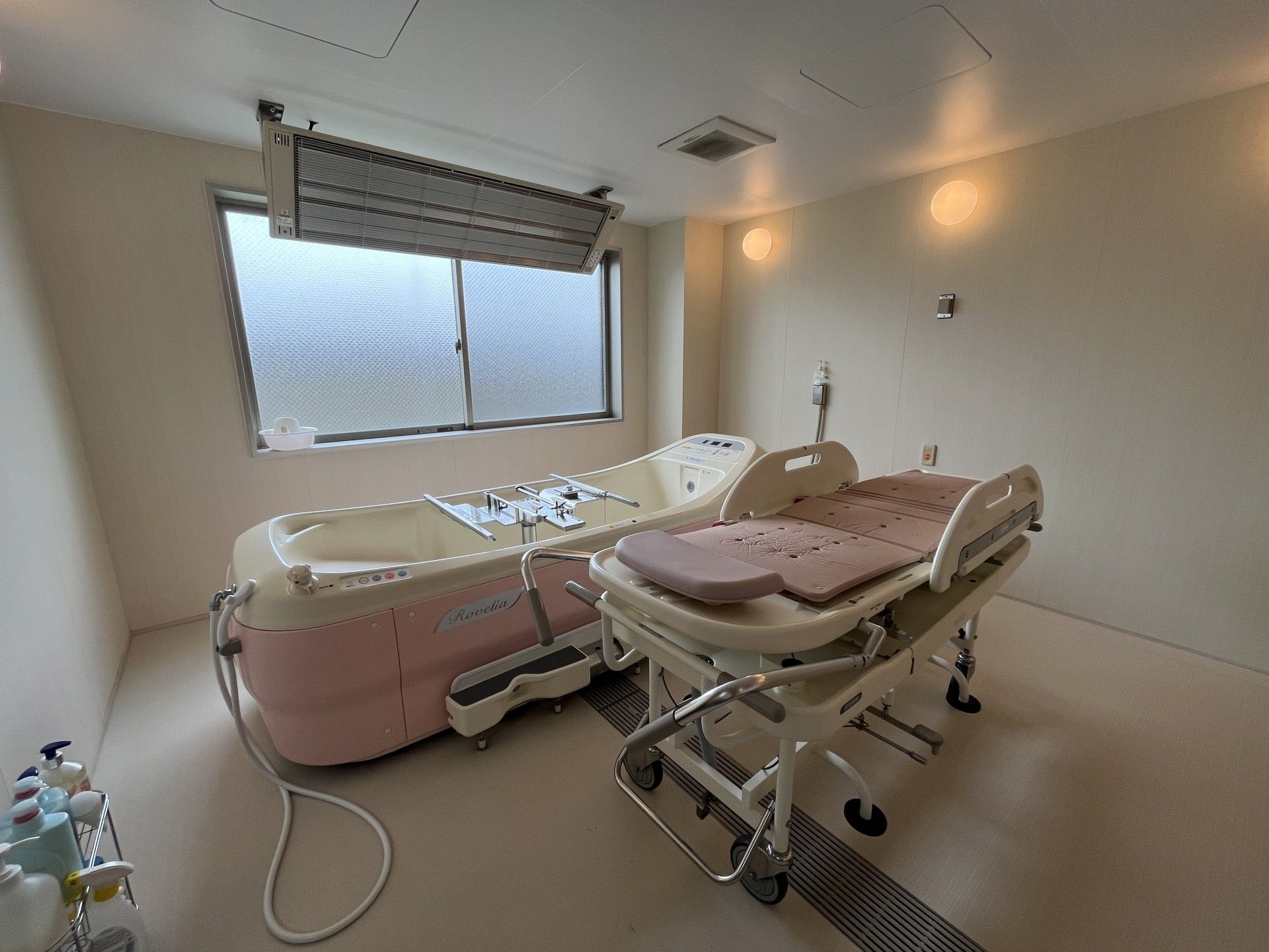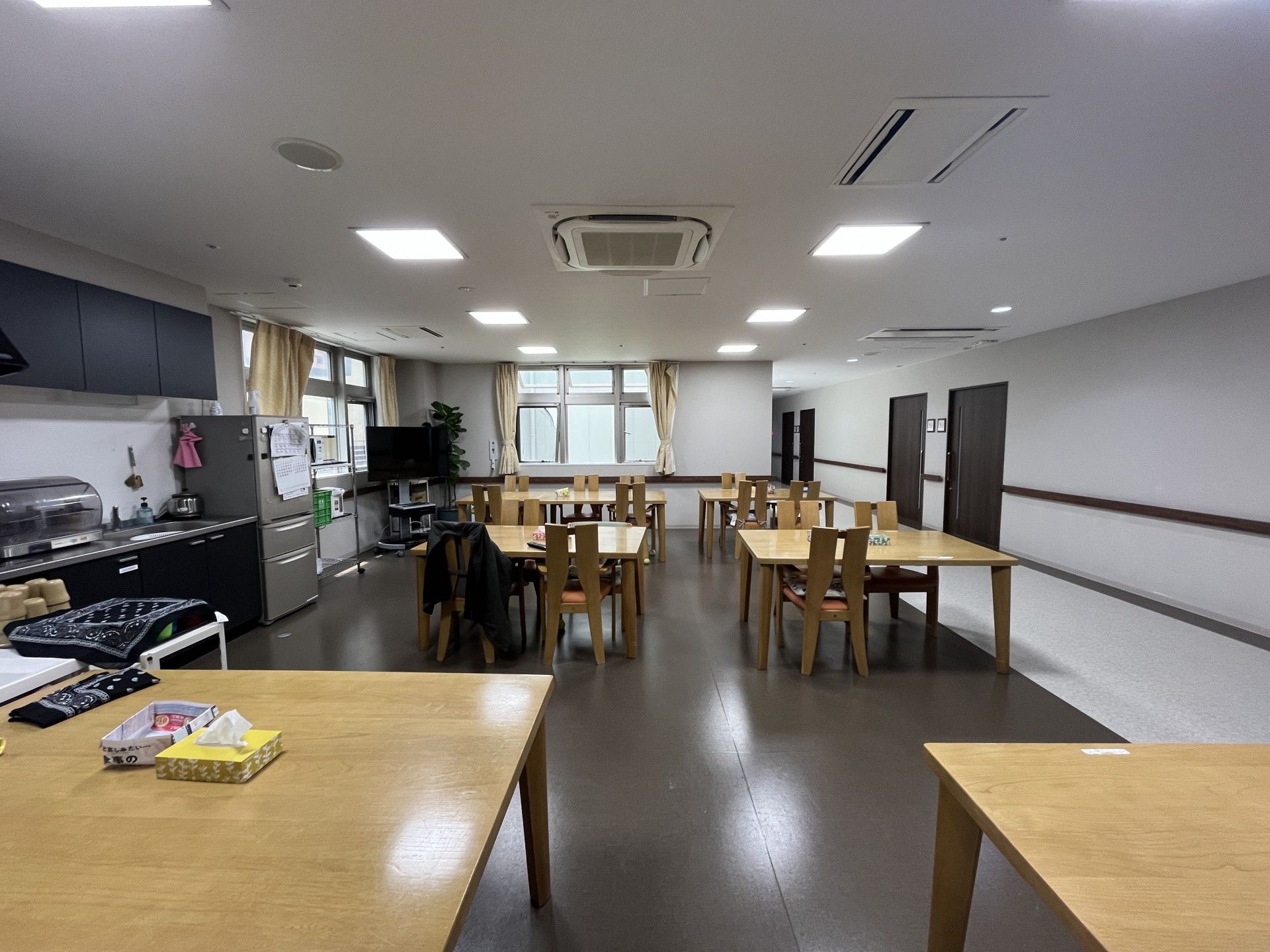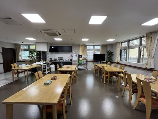 施設内には男女別のトイレが複数設置され、すべて車椅子対応となっています。浴室は一般浴、中間浴(リフト浴)、寝たままでも入れる機械浴を完備し、どのような状態の方でも入浴を楽しんでいただけます。理学療法士などによる専門的なリハビリを計画的に実施し、身体機能の維持・向上をサポートいたします。経口維持加算や療養食加算を取得しており、栄養面にも配慮したサービスをご提供しています。毎月第4火曜日には施設内研修を開催し、職員の専門性向上に努めています。