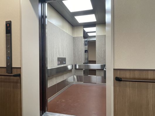 手すりが設置された明るく広い廊下です。ゆったりとした空間で、安心してお過ごしいただけます。