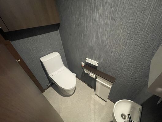 手すり付きの清潔なトイレ空間です。安全に配慮された設計で、ご自身のペースで快適にお使いいただけます。