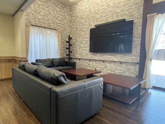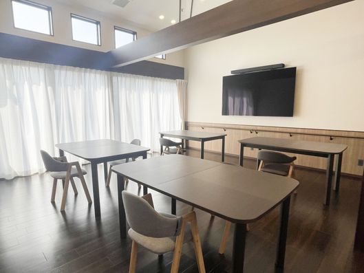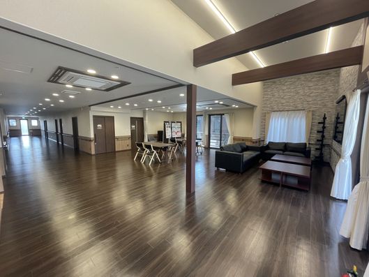 広々とした共有スペースは、木目調の床が温かみを感じさせ、ゆったりとした時間を過ごせる設計になっています。
