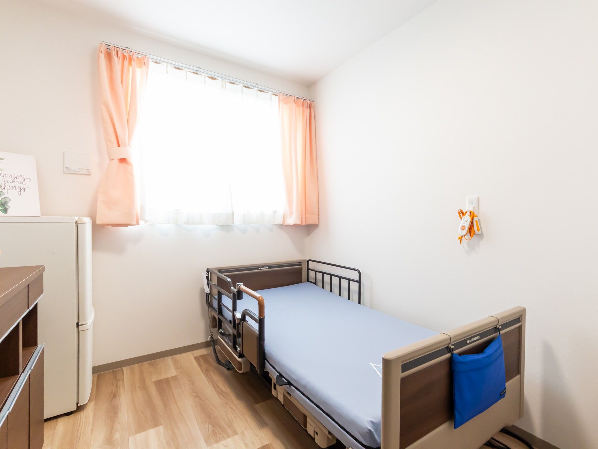 全室個室となっており、プライバシーに配慮した生活空間をご用意しています。居室面積は11.05~11.40㎡で、トイレ・洗面所・エアコン・照明器具・ナースコールを標準装備しています。また、居室だけでなく共用スペースを含む施設全体が完全バリアフリー設計となっており、車いすをご利用の方でもスムーズに移動できる環境です。入居時の費用負担を軽減するため、敷金は0円となっています。月額利用料は約9万円(税込)からとお手頃な料金設定で、安心の住まいをご提供いたします。