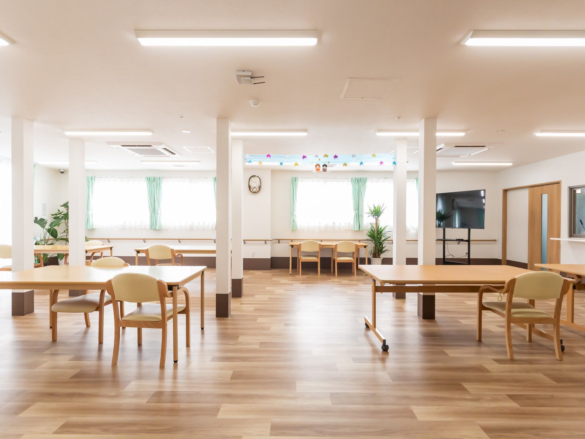広々とした空間で、自然光が差し込む中、ゆったりとした時間をお過ごしいただけます。