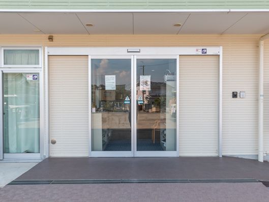 広い自動ドアの入口は、車椅子の方も安心して出入りできます。郵便受けもすぐそばにあります。