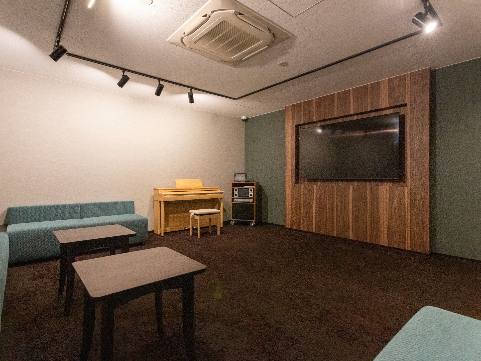 椅子が並ぶ広々とした空間で、イベントや集会に最適です。自然光が差し込み、明るい雰囲気です。