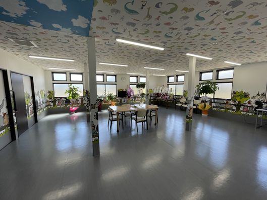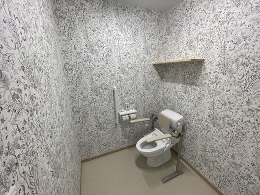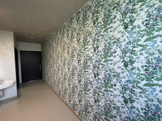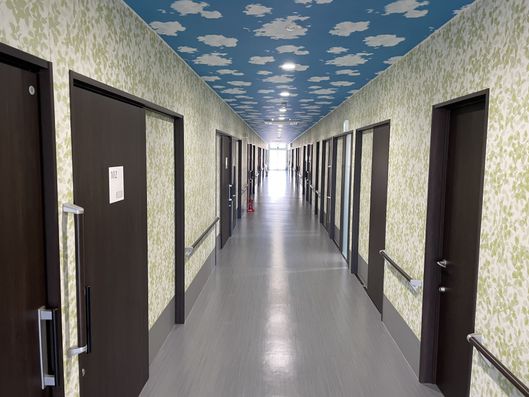 施設内はとても広い作りでバリアフリー対応。車いすでの移動もスムーズです。入居者様のお部屋は全て個室。広さは22㎡ございます。お部屋によって壁紙が違っているので、雰囲気が全く違うお部屋となっております。ユニークな壁紙やシックな壁紙、通常通りの壁紙?など、どれを選ぶかは初めに入る方の特権です。