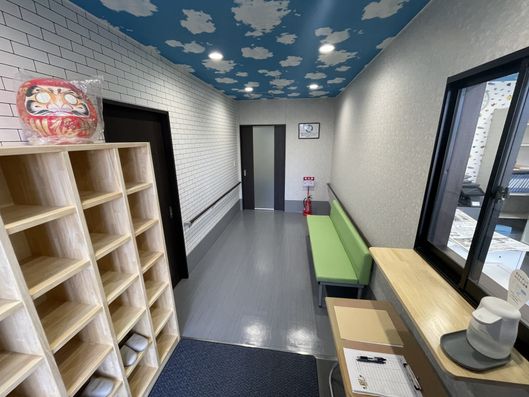 ゆったりとした駐車スペースが確保された入口です。バリアフリー設計で、どなたでも安心してお越しいただけます。