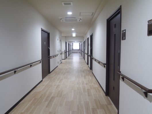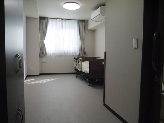 入居者様のお部屋は全て個室で、プライバシーに配慮された空間です。使い慣れたものや愛用の品を持ち込み、ご自宅に近い雰囲気で生活できます。室内には、ナースコール(2か所)や洋式トイレ、洗面所、クローゼット、スプリンクラーなどが設置されております。なお、介護用ベッドに関しましては、介護保険適用となっております。詳しくはスタッフか担当のケアマネージャーにご相談ください。