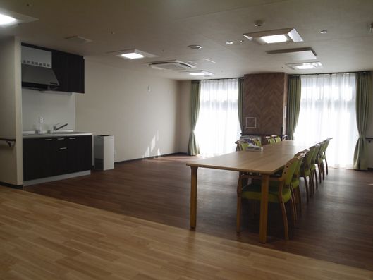 ゆったりとした椅子が並ぶダイニングで、お食事や交流をお楽しみいただけます。明るく開放的な空間が広がっています。