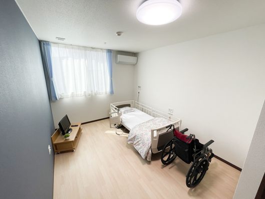 • ゆったりとした個室には、必要な家具が整い、窓からは自然光が差し込みます。車椅子の方も過ごしやすい空間です。