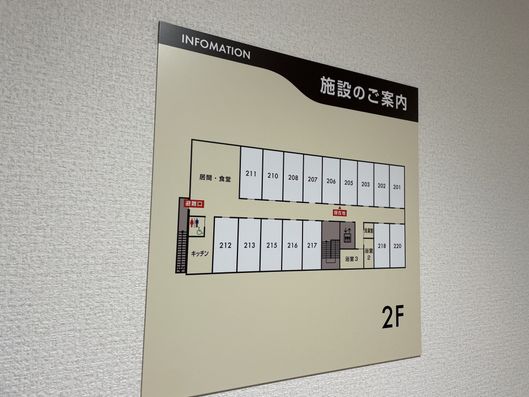• 分かりやすい案内図で、各部屋へのアクセスも安心です。日々の生活に必要な情報が一目で把握でき、快適な生活をサポートします。