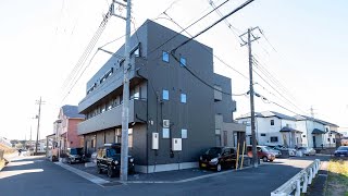 落ち着いた色合いの建物で、周囲の環境に溶け込んでいます。駐車スペースも確保されています。