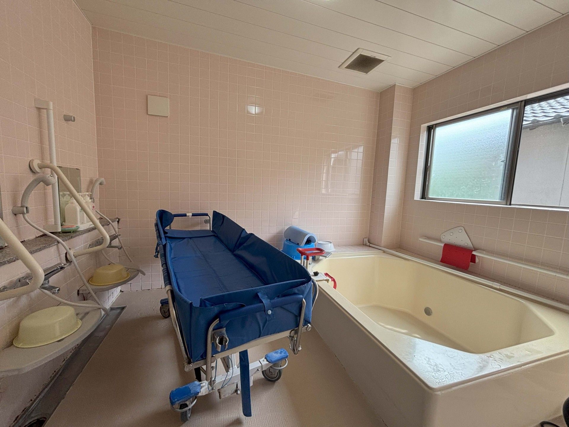 • 浴室 広々とした浴槽と移動式のベッドがあり、安心して入浴を楽しめる環境です。
