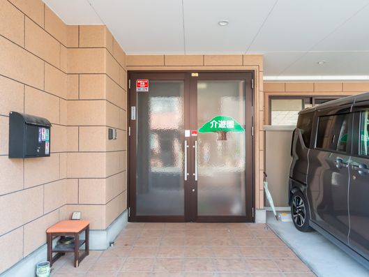 • 車椅子でも安心して通れる広い玄関です。車寄せがあり、雨の日も濡れずに入れます。