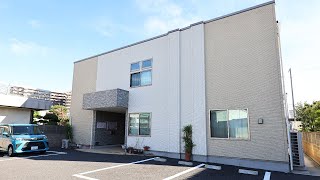 ホワイトとベージュの落ち着いた色調の外観。住宅街の中で静かにお過ごしいただけます。