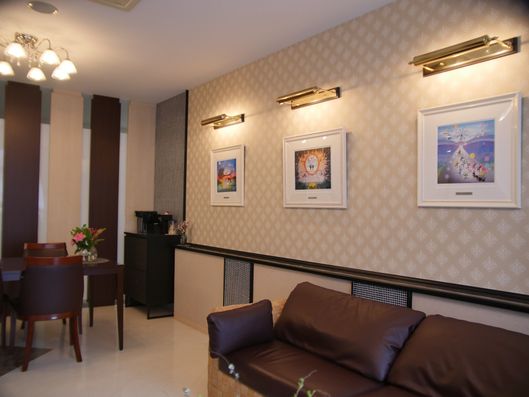 広々とした居室で、上品な家具と照明が心地よい空間を演出しています。快適な毎日をお過ごしいただけます。