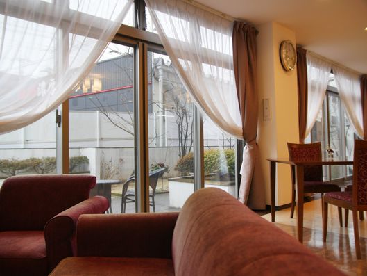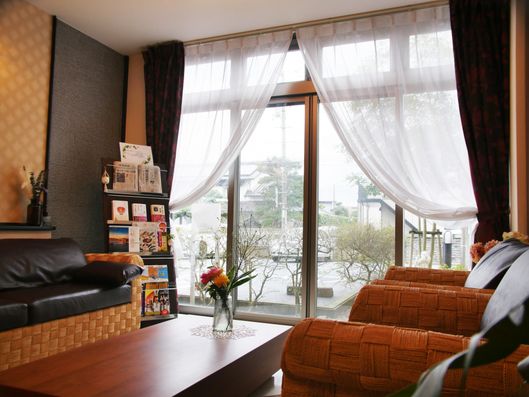 ゆったりとしたソファが並ぶリビングスペースです。窓から自然光が差し込み、穏やかな時間をお過ごしいただけます。