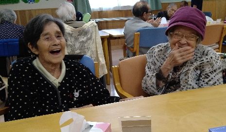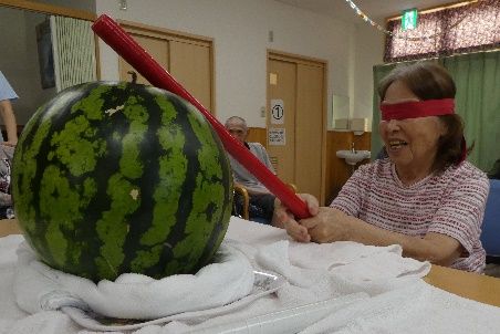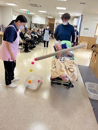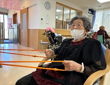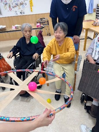 機能訓練をともなったレクリエーションを毎日日替わりで実施しています。上肢下肢運動等の機能訓練や音楽を使った脳トレ、回想療法等の認知機能に働きかけるプログラムを日常的におこない、楽しみながら五感全ての機能を刺激します。また、外出や屋外イベントは介護度や身体の状況に限らず定期的におこなっています。車に乗ってのお花見見学や、ご家族や地域の方に敷地を開放した水風船祭り、秋にはカフェイベント、とまと村祭り等、季節を感じる取り組みは入居者様にも大好評です。