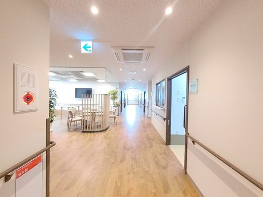 廊下の壁は全て手すりがついていますので、安全な歩行が可能です。