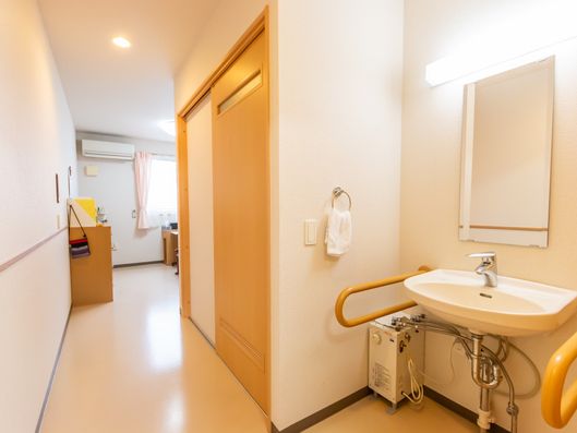 | その他 | 地上波アンテナ、電話回線、ミニキッチン、電磁調理器、玄関引き戸扉、クローゼット、手すり、フローリング、フラットフロア、ナースコール、照明器具、エアコン、カーテン、防火カーテン、温水洗浄機能付きトイレ、車椅子対応トイレ、車椅子対応洗面化粧台、避難設備 | |||