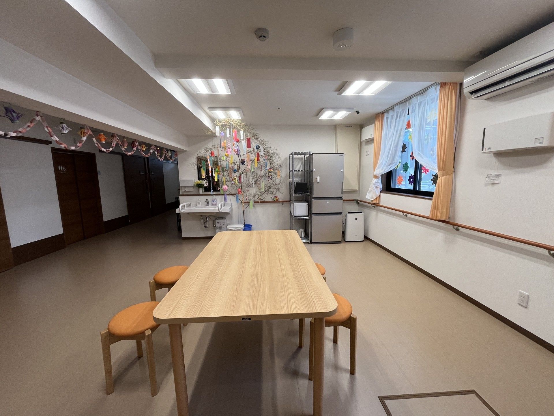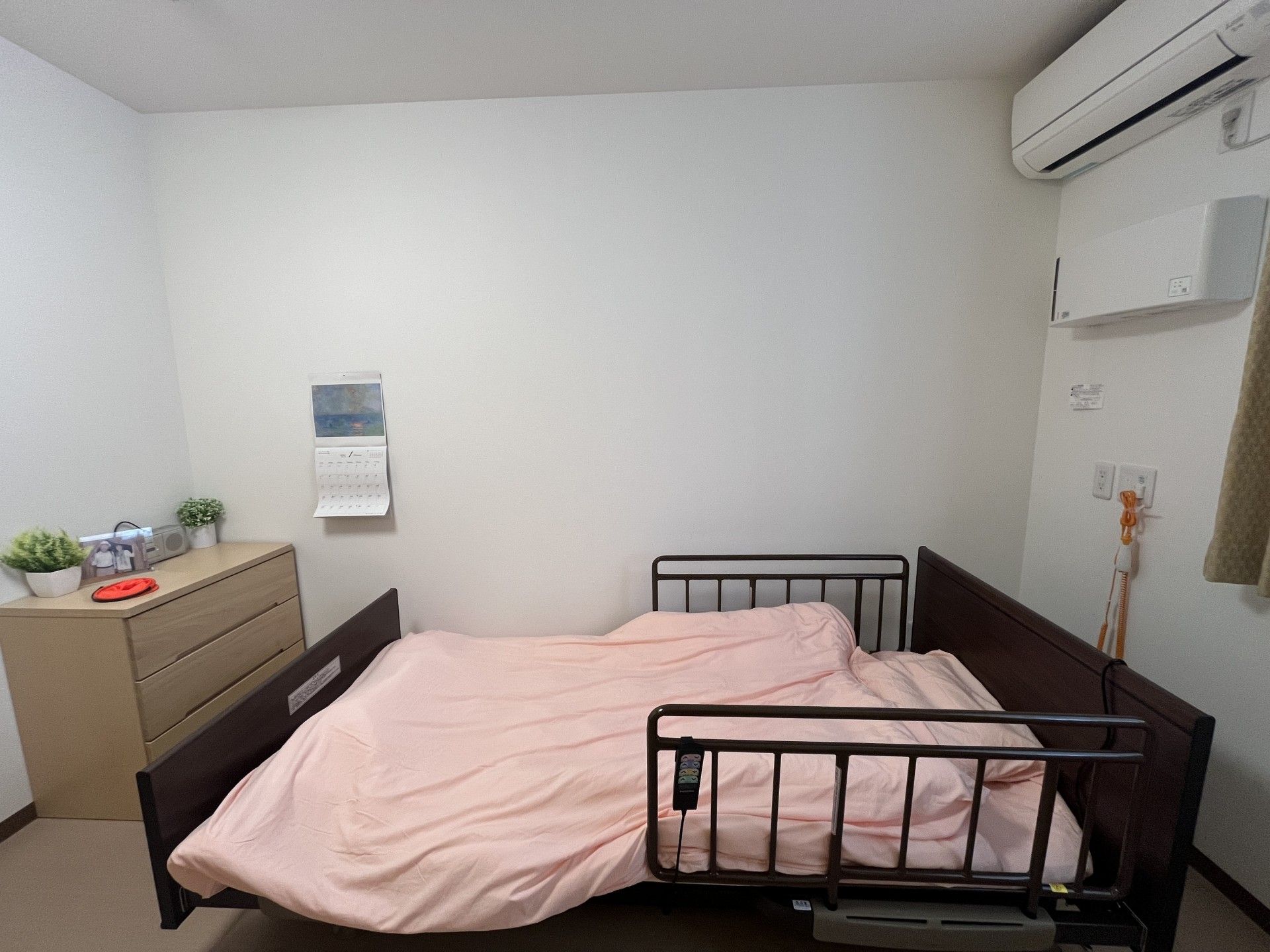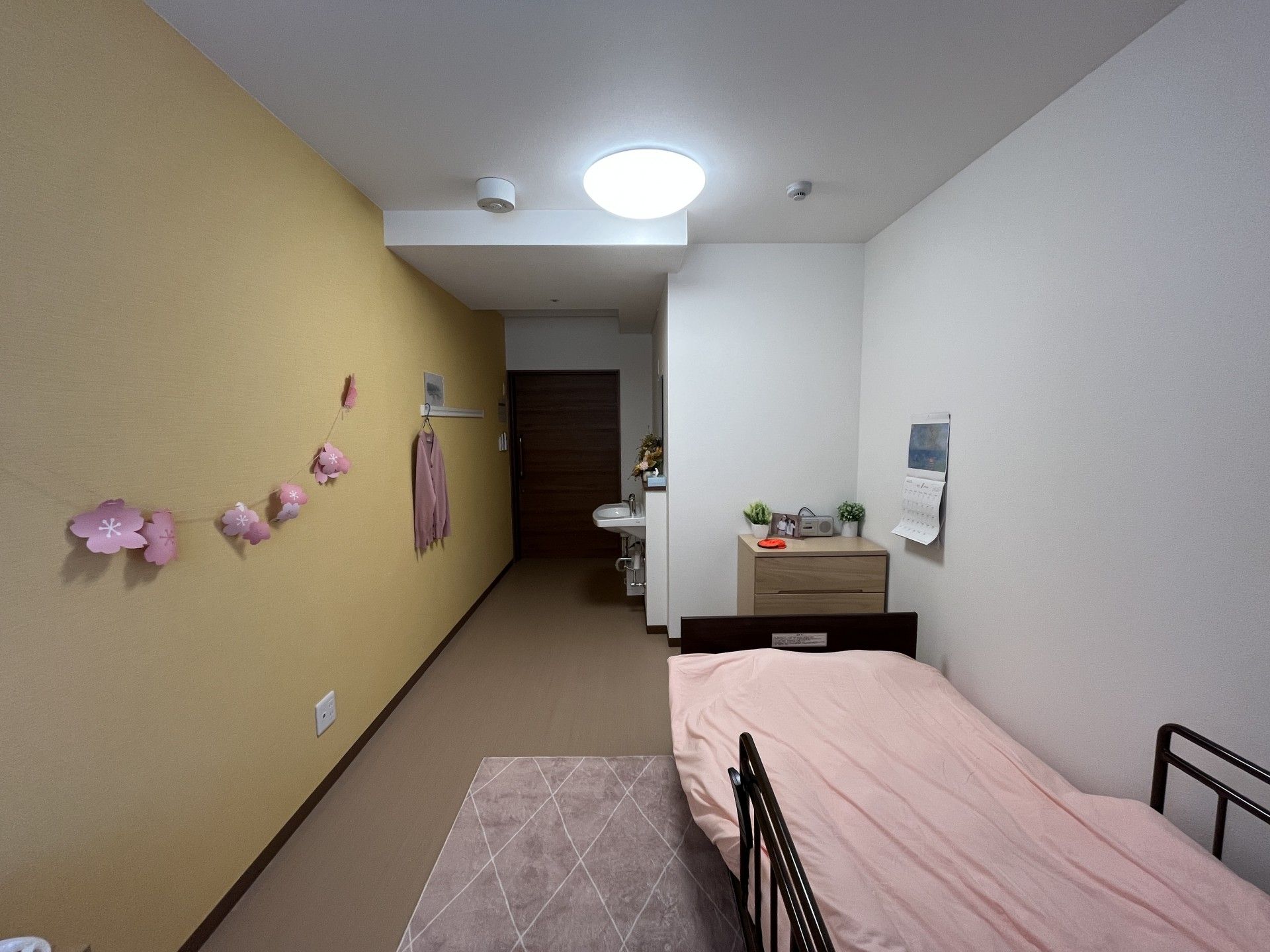 全室個室のプライベート空間が確保された居室で、ご家族様との大切な時間も過ごせます。居室にはベッド、エアコン、カーテン、洗面台などが備え付けられており、ペットの同居や差し入れによる外食なども可能です。共有スペースではレクリエーションなどもあり、ご入居者様同士の交流の場も設けられております。日頃の医療・看護・介護はもちろん、くつろげる家庭的な環境作りにも力を入れております。