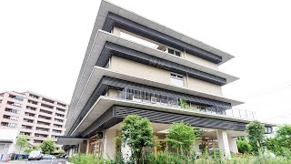 施設は現代的な4階建ての建物で、外に開かれたデザインです。周辺に緑を豊富に植え、リラックスして快適にお過ごしいただけるよう設計しています。