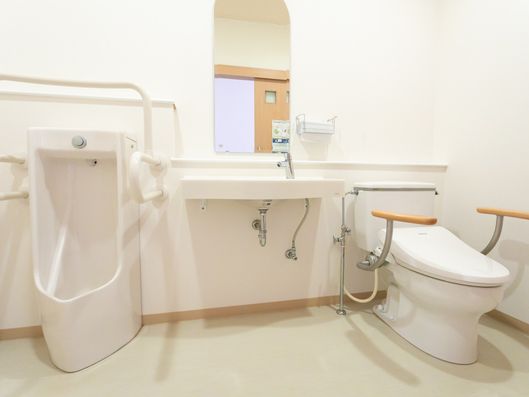 手すりが設置されたトイレは、安心してご利用いただけるよう配慮されています。