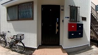 玄関前には自転車が置かれており、日常の移動に便利です。階段もすぐそばにあります。