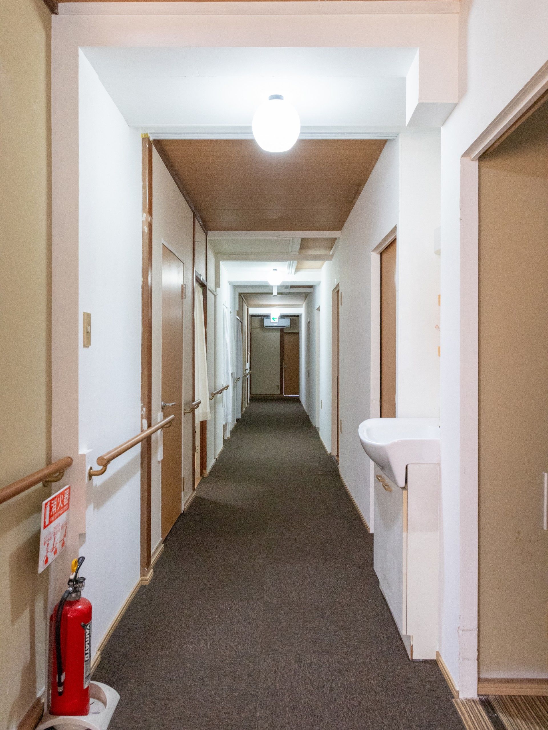 手すりが設置された廊下は、安全に移動できるよう配慮されています。