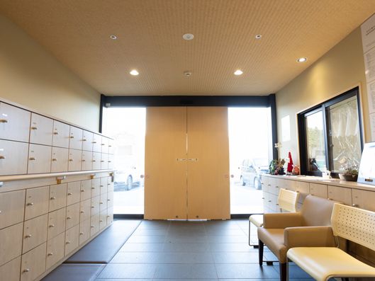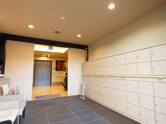 安心のエントランスで迎える、ぬくもりある受付空間です。皆様の快適な生活をサポートいたします。