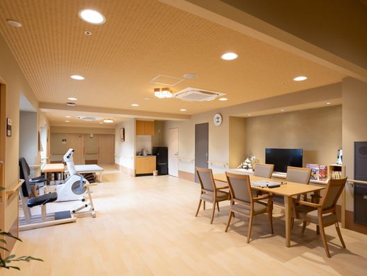 広々とした共有スペースで、トレーニング器具も備え、日々の健康維持に役立ちます。
