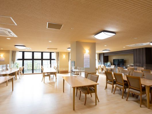 日光が差し込む清潔感のある食堂で、共に食事の時間をお楽しみいただけます。