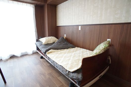 「ザ・クラシックメデカマンション大宮」の住宅内は居室や共用スペースを含めてバリアフリー対応。居室にはベッドやトイレ、車いす対応の洗面化粧台、ナースコールが完備されています。ベッドの敷きパッドが見守りセンサーの役割を果たしており、ベッド上での動きや異常を感知した場合、スタッフがかけつける仕組みです。居室は個室と二人部屋があり、長年大切にしてきた物を持ち込めて整理できる、収納スペースも全室にございます。