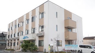 当施設はベージュと白のデザインが特徴の3階建て建物です。道路に面した位置にございますので、車でお越しの際便利です。