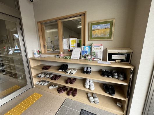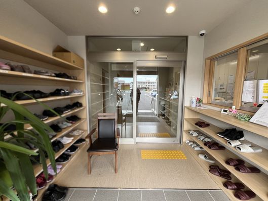 スロープ付きの入口は、車椅子の方も安心してご利用いただける設計です。明るく開放的な雰囲気が迎えてくれます。