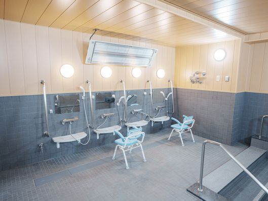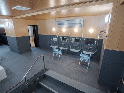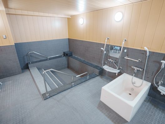 • 大浴場 大きな浴槽は埋め込みタイプなので浴槽をまたぐことなくご入浴可能。シャワースペースの周りにも手すりが設置されております。