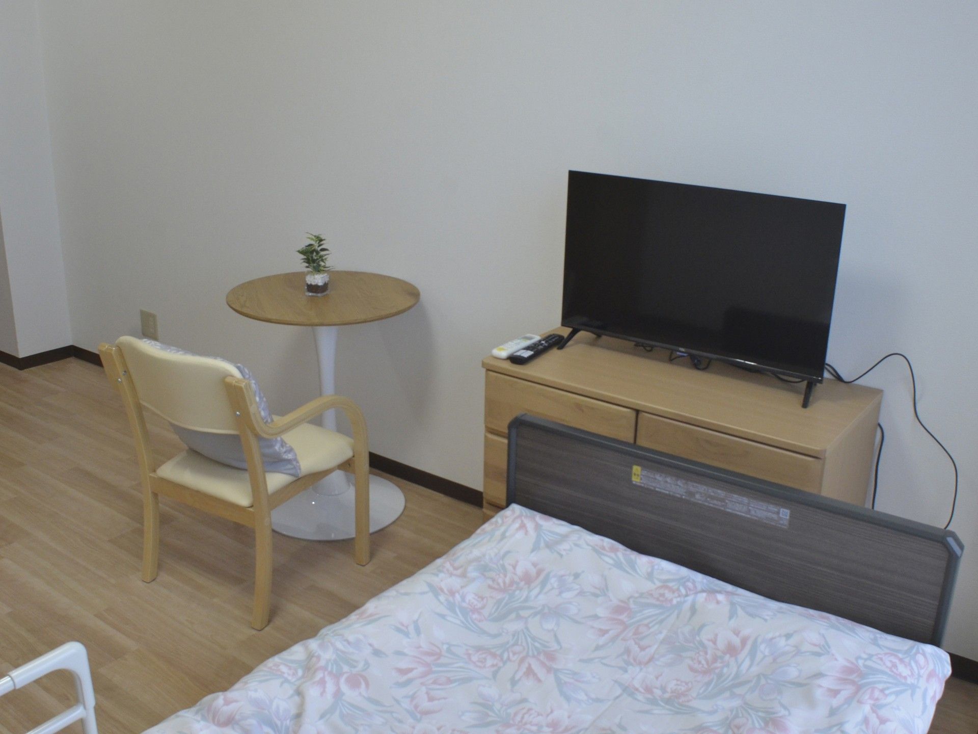 入居一時金0円で始められる住宅型有料老人ホームです。月額費用は約13万円台からとリーズナブルな設定で、管理費には居室の電気代・水道代はもちろん、寝具代、洗濯代、おむつ代なども含まれています。全38室の居室は、医療ケアが必要な方でも安心して過ごせる設計となっています。要支援・要介護の方が入居対象で、体調が悪化しても継続して住み続けられる環境を整えています。居室内は落ち着いた雰囲気で、プライバシーを確保しながらも安全面に配慮した空間となっています。