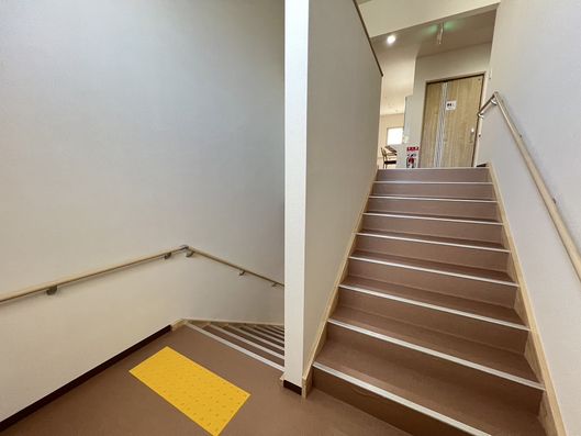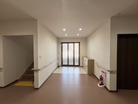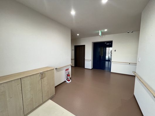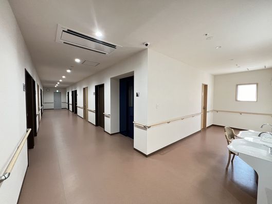 ゆったりとした廊下は、手すりが整備されており、安心して歩行できる設計になっています。明るく清潔感のある空間で、日々の生活が快適に過ごせそうです。