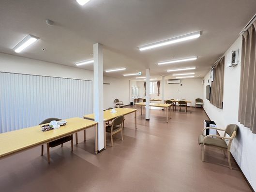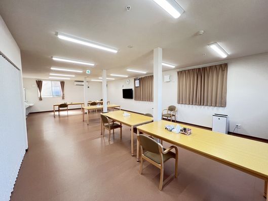 広々とした空間で、ゆっくりとお過ごしいただける共有スペースです。椅子に座って、読書やおしゃべりを楽しむことができます。